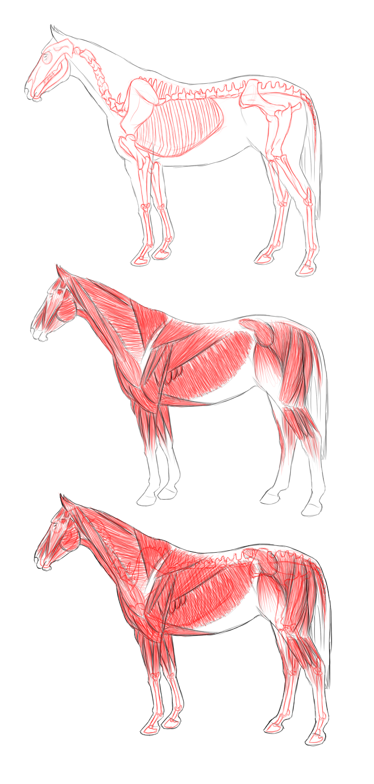 of drawings to the lion, one image showing the horse’s skeleton, one showing